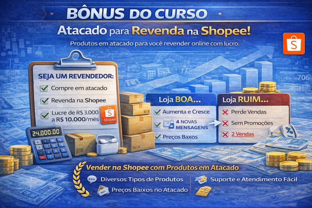 Como vender na Shopee passo a passo e ganhar dinheiro online Curso rapido para vender na Shopee do zero e faturar online Guia completo para vender na Shopee e ter renda extra na internet Aprenda a vender na Shopee mesmo sem experiencia em vendas online Mini curso Shopee para iniciantes vender mais e escalar resultados Mini curso express para aprender a vender na Shopee e lucrar online O que vender na Shopee e como comecar a ganhar dinheiro online Aprenda do zero como escolher produtos certos criar anuncios e vender todos os dias na shopee mesmo sem experiencia Metodo simples para comecar vender na shopee com baixo investimento e alta rotacao Passo a passo pratico para transformar a shopee em uma fonte de renda online Estrategia validada para iniciantes venderem na shopee e escalar resultados