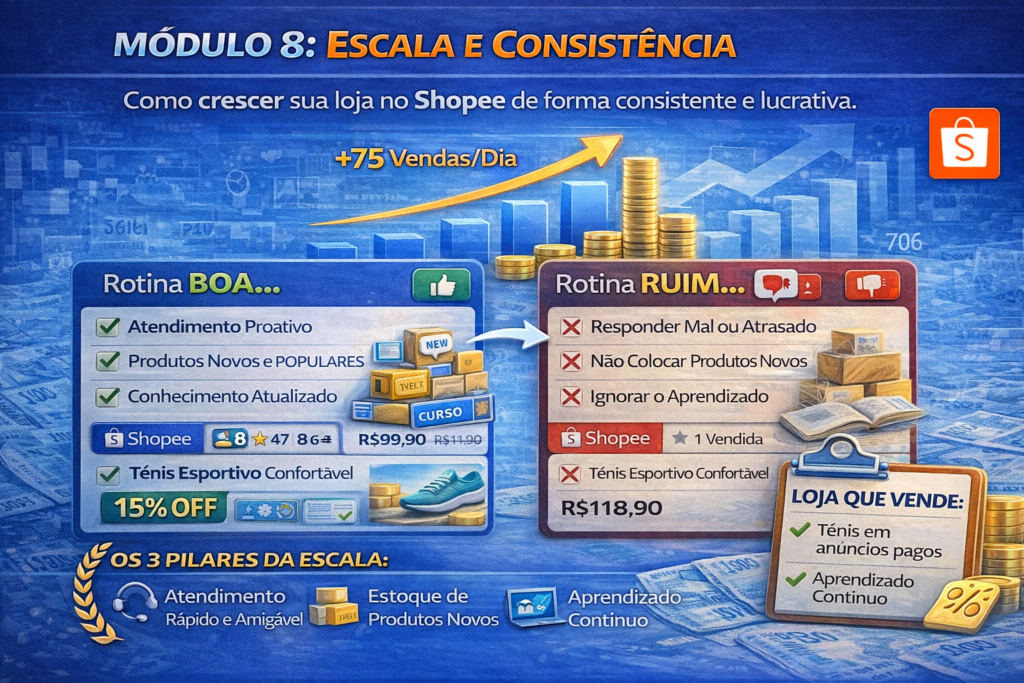 A Shopee hoje é uma das maiores vitrines digitais do Brasil, mas a maioria das pessoas entra, tenta vender e desiste não por falta de esforço, mas por falta de direção correta.