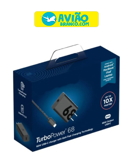CARREGADOR TURBO POWER MAIS RÁPIDO DE TODOS OS TEMPOS: Com 68W, esse carregador se destaca entre os demais com seu carregamento turbo. Pode ser usado em smartphones, tablets e notebooks com entrada USB-C de até 68w.