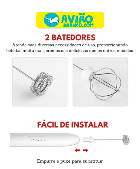 Acompanha um batedor exclusivo do tipo fouet, proporciona bebidas muito mais cremosas que os outros modelos, possui 2 cabeças removíveis que podem ser usadas de acordo com a sua necessidade!