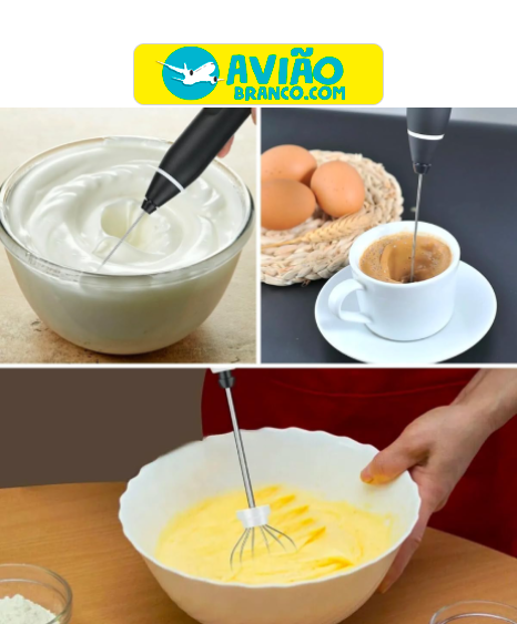 Este novo Misturador de Bebidas Portátil pode ser usado para fazer omelete, cremes, deixar o leite muito mais cremoso, misturar shakes e fazer deliciosas bebidas cremosas como cappuccino, café, chocolate quente, whey, milk shake de maneira muito mais rápida!
