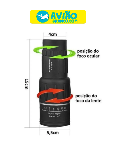 Monóculo Luneta de ótima qualidade e longo alcance, com ampliação de 16x. Fácil de operar.